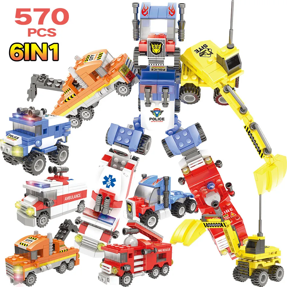 discount 570 Pcs Trasformato Robot 8 In1 Blocchi di Costruzione della Città Militare Auto Della Polizia Ambu